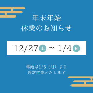 12月27日(土)〜1月4日(日) の期間は冬季休業とさせていただきます。